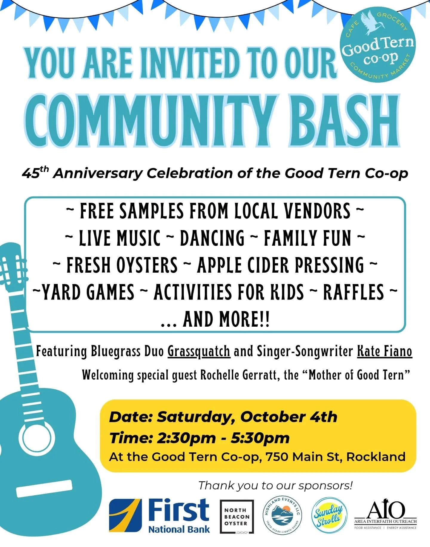The Good Tern Co-op is a community-owned grocery store that emphasizes organic and locally-sourced products while offering all the essentials of a full-service market. Our produce department features fresh, organic fruits and vegetables from Maine and beyond. We stock local milk, yogurt, cheese, meats, and pantry staples, plus a wide range of gluten-free, dairy-free, and vegan options. Shoppers can save money and reduce waste in our bulk section, which includes grains, nuts, flours, oils, maple syrup, and moreβperfect for refillable containers. Our Wellness department offers carefully curated vitamins, supplements, personal care, and eco-friendly cleaning products, some in bulk. The grab nβ go section features sandwiches, salads, and baked goods, including vegetarian, vegan, and gluten-free options. Next door, Hole in the Wall Bagels serves fresh-baked bagels, locally roasted coffee, and espresso, with indoor and outdoor seating. The Good Tern Co-op is dedicated to supporting health, sustainability, and our local food economy.